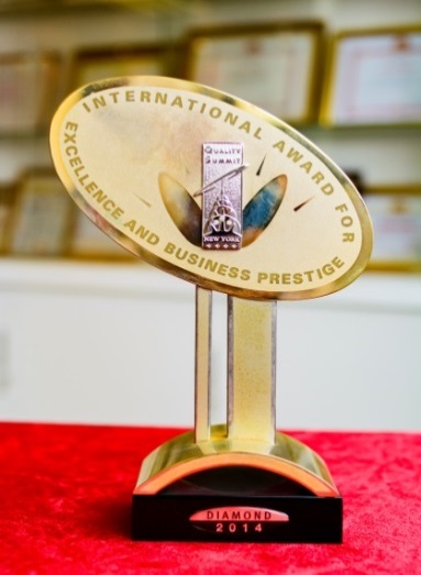 Diamond Category of The International Award for Excellence & Business Prestigre  granted by BID on May 25& 26, 2014 in New York, USA     Platinum Category Award of Century International Quality 2013 granted by Business Initiative Direction on Mach 10, 2013 in Geneva, Switzerland   The International Star for Leadership in Quality Award granted by Business Initiative Directions on June 25, 2012 in Paris, France