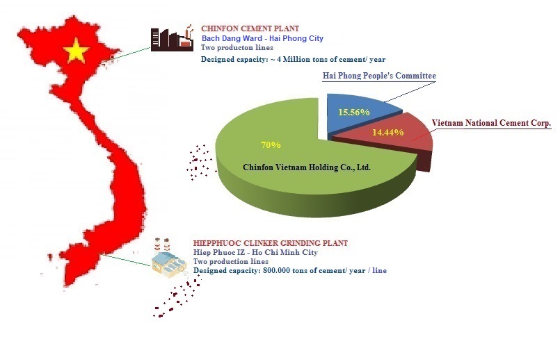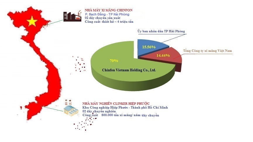 Chinfon Cement Corporation, No. 288, Bach Dang Street, Bach Dang Ward, Hai Phong City, was established based on the Investment License No. 490/GP issued by the State Committee for Investment and Corporation (now called Ministry of Planning and Investment) dated December 24, 1992. After more than 30 years of establishment and development, the Company currently owns an integrated cement plant in the North, a clinker grinding plant in the South with a reputable Chinfon Cement Brand in Viet Nam and international cement market.